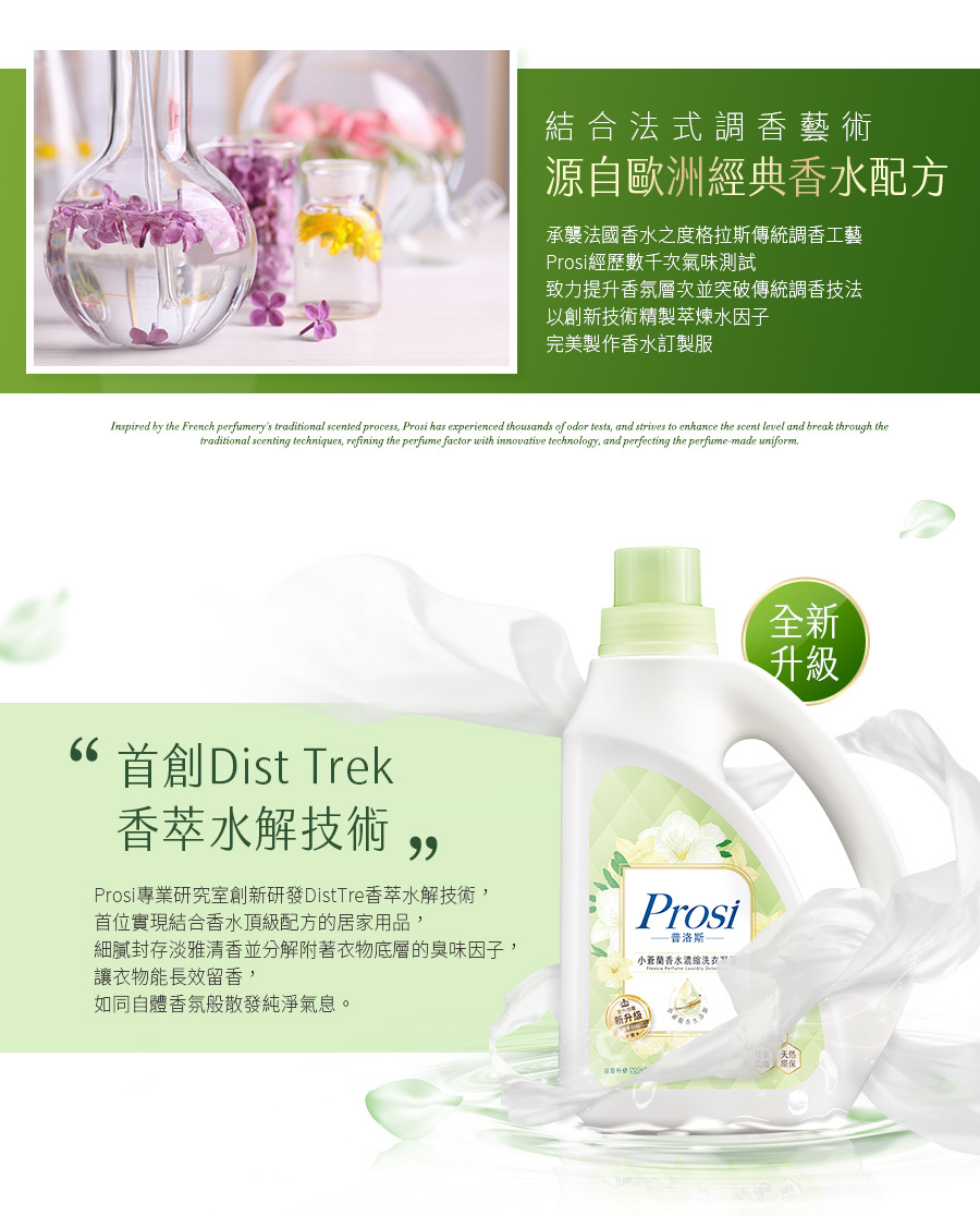 ●萃取自法國頂級香精,首創擁有香水層次感的香水洗衣凝露