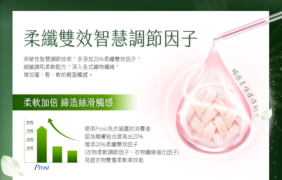 ●增添20%雙效柔纖因子